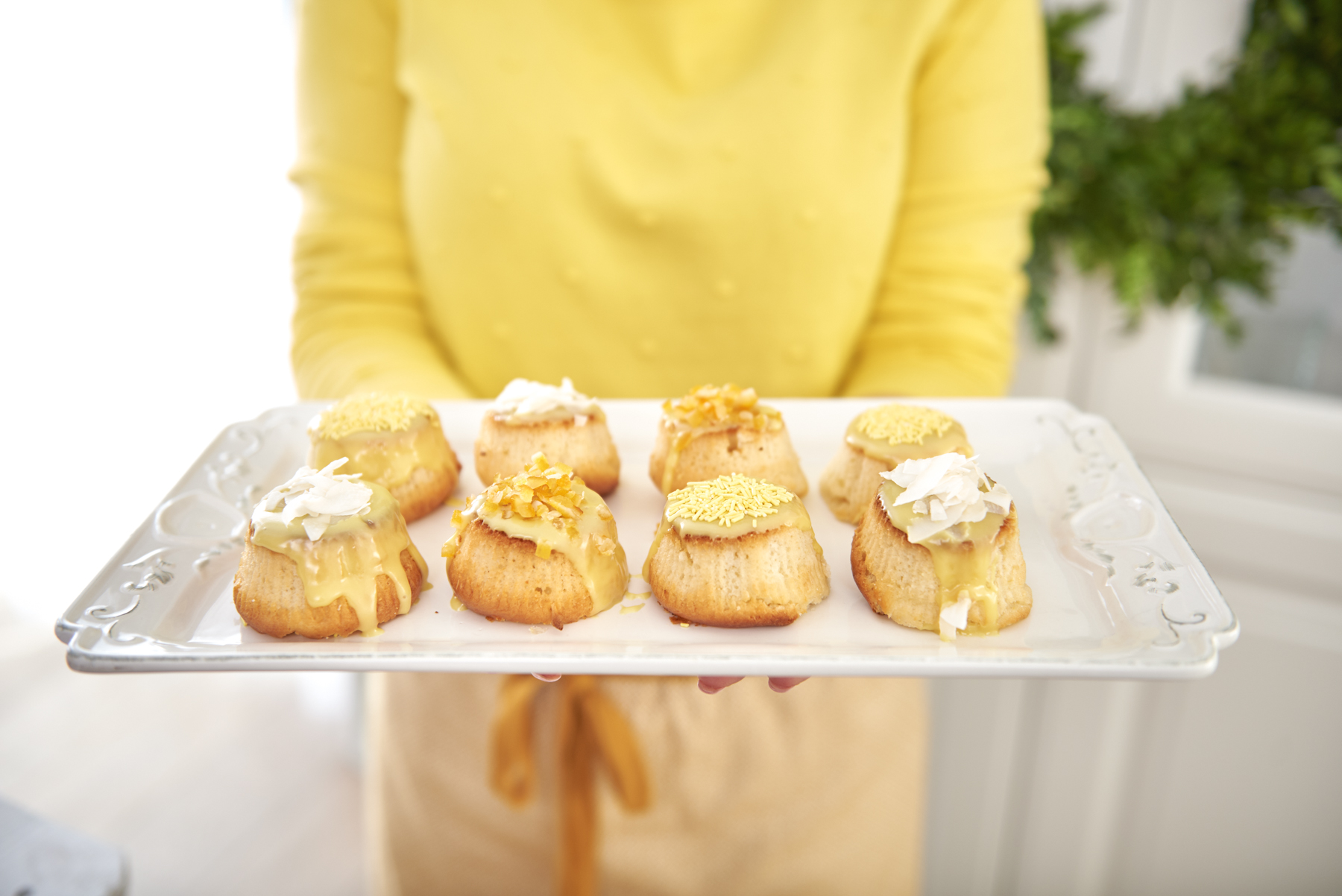 - do dekoracji: płatki kokosowe, skórka pomarańczy kandyzowana, posypka cytrynowa