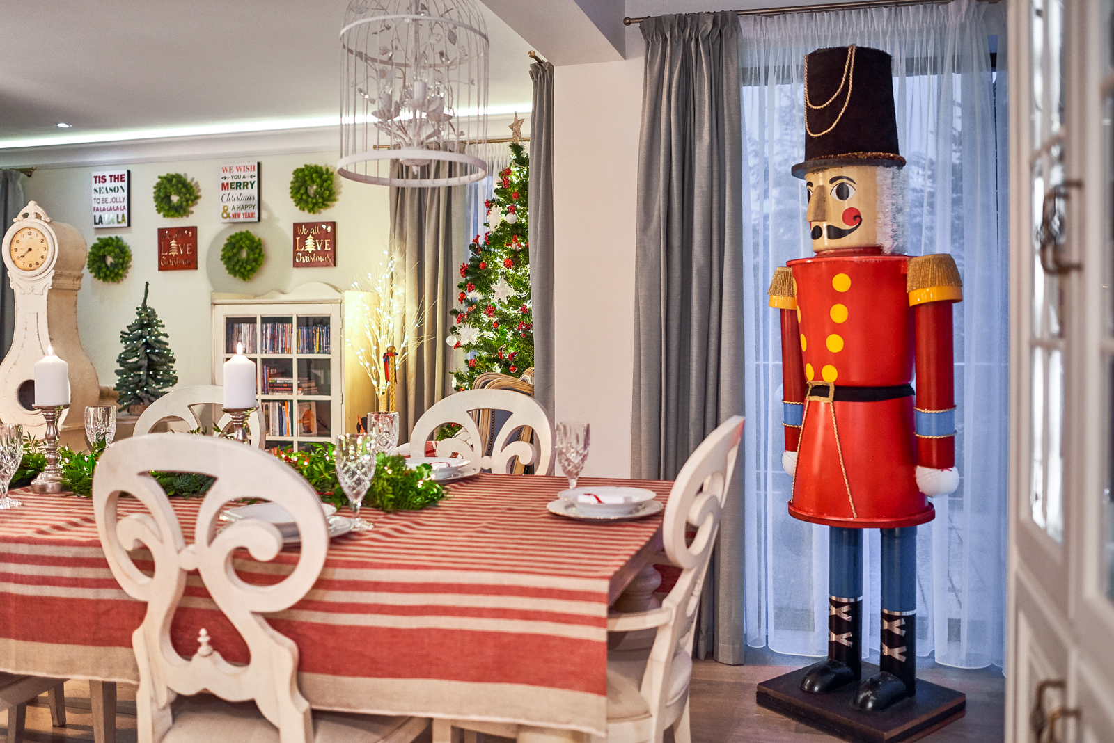 MOTYW PRZEWODNI: Masz ochotę na prawdziwe świąteczne szaleństwo? Chcesz aby Twój dom zachwycał świątecznym klimatem od piwnicy aż po strych? Nic trudnego! Zadbaj tylko koniecznie aby dekoracje posiadały jeden, spójny charakter. Wybierz motyw, który najbardziej odpowiada zarówno charakterowi wnętrza jak i odzwierciedla temperament domowników. Jeśli należysz do zwolenników umiaru i prostoty postaw na minimalizm w postaci ekologicznej choinki z palet i delikatnych stroików z naturalnej jodły. Jeśli z kolei, bliski jest Ci wystrój niczym z Krainy Świętego Mikołaja, postaw na zabawne figurki przedstawiające Mikołaja, renifery i leśne skrzaty, które potrafią rozweselić nawet największego ponuraka. Dom udekorowany z myślą o najmłodszych, ocieplą także poduszki-przytulanki oraz lampki z bawełnianych kul. A już prawdziwym hitem są figurki dziadka do orzechów. Dokładnie rok temu, przechadzając się po uliczkach Paryża, figury Dziadka, można było spotkać niemalże na każdym rogu ulicy. Ten motyw stał się dla mnie ogromną inspiracją, która już zdominowała nasze tegoroczne święta!