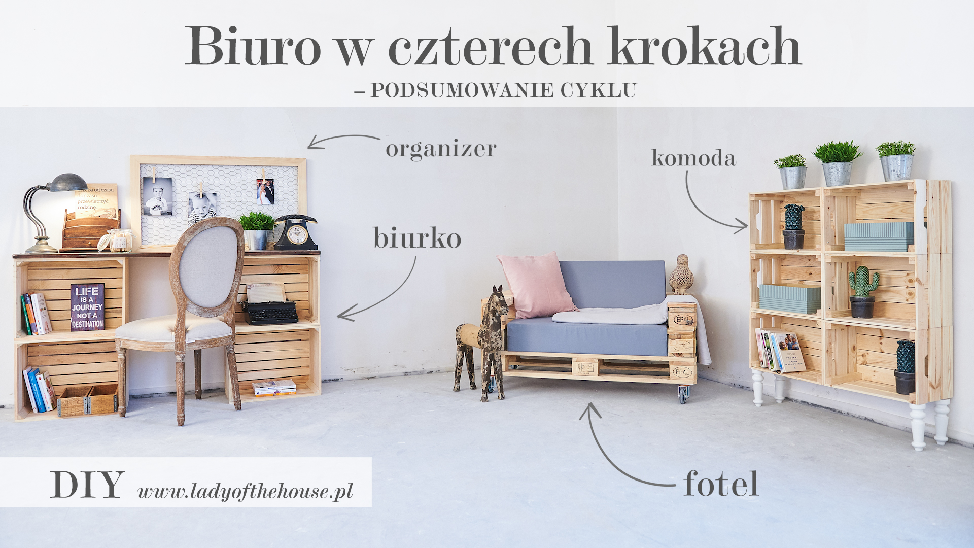 W moim najnowszym cyklu „DOMOWE BIURO”, przedstawiłam Wam, jak własnoręcznie zaaranżować osobisty kącik do pracy poprzez meble i dekoracje DIY. Poprzez ten projekt, chciałam zainspirować Was do majsterkowania i przeprowadzania wnętrzarskich metamorfoz a także udowodnić, że aby mieszkać oryginalnie, stylowo i funkcjonalnie, wcale nie trzeba wydawać majątku!