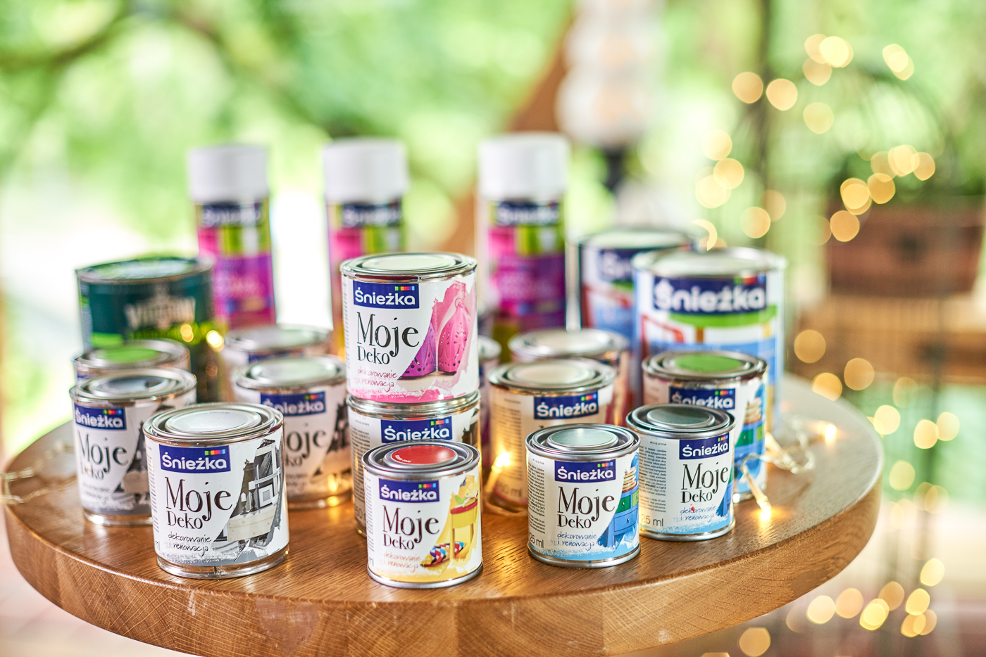 - Farby Śnieżka Moje Deko w kolorach: wanilii i platyny