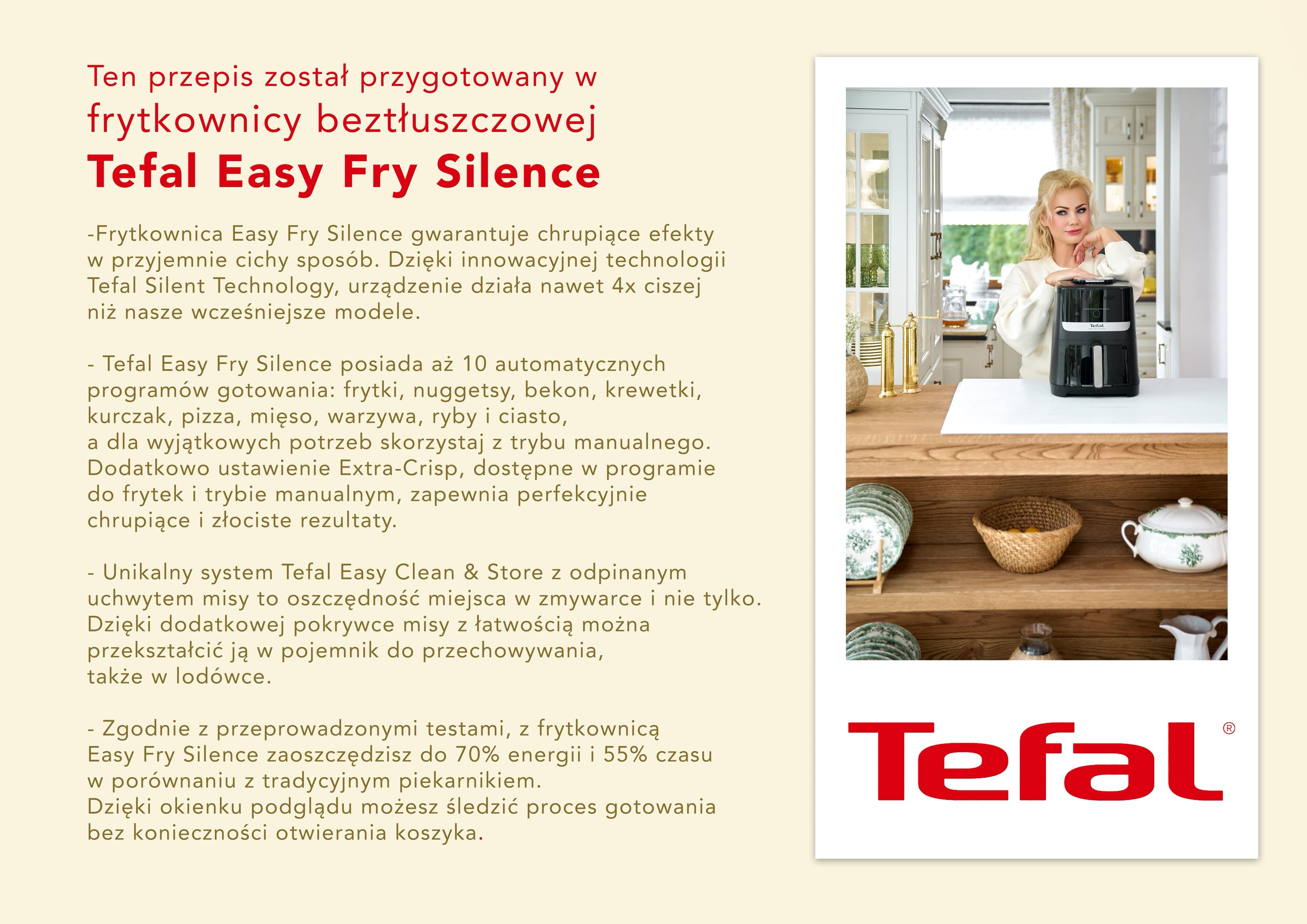 Ten przepis przygotowałam w Tefal Easy Fry Silence tzw. frytkownicy beztłuszczowej. Gotowanie w frytkownicy beztłuszczowej, zwanej także airfryerem, polega na pieczeniu potraw przy użyciu gorącego powietrza. Frytkownica beztłuszczowa jest zdrowa, bo wymaga dużo mniej tłuszczu niż tradycyjna frytkownica. A do tego ciasta wychodzą z tego sprzętu zawsze idealnie wypieczone!