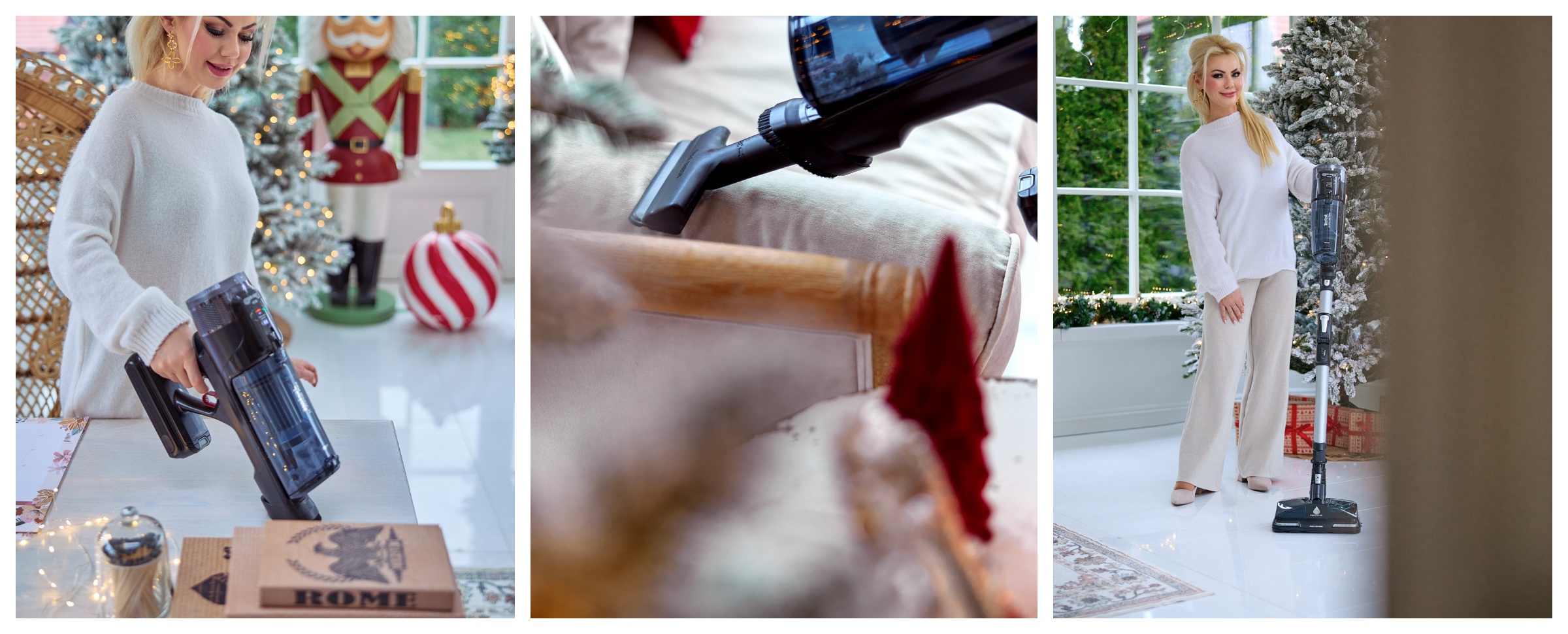 - używam go do sprzątania np. paprochów ze stołu, usuwania kurzu z lamp sufitowych, czyszczenia dywanów i mebli tapicerowanych, a przy tym silnik odkurzacza automatycznie dostosowuje moc ssącą do sprzątanej powierzchni