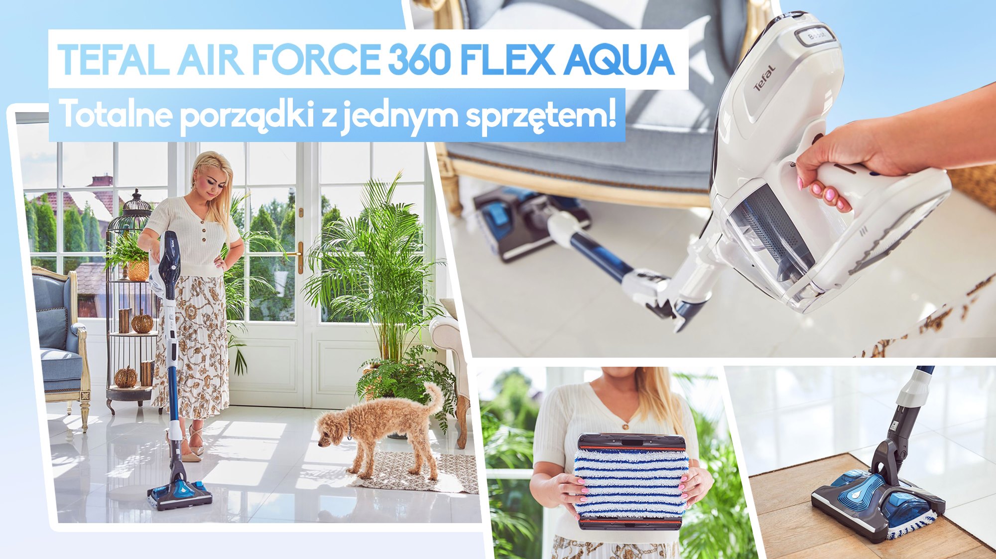 Używam Tefal Air Force Flex niemalże codziennie, przetestowałam go na wszystkie strony, szybko podbił moje serce, więc postanowiłam polecić go również Wam, tymczasem marka Tefal wprowadza na rynek nakładkę AQUA 2w1 , która jednocześnie odkurza i mopuje powierzchnię…Zobaczcie sami: