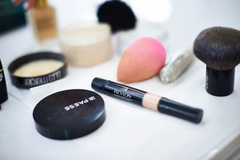 1. Nakładamy bazę oraz podkład. Przy moim jasnym odcieniu twarzy, użyliśmy bazę Laura Mercier i podkład Estee Lauder Double Wear nr 2N1 a także puder sypki Laura Mercier Translucent Powder, na powieki cienie Paleta MAP T22 matowe brązy.