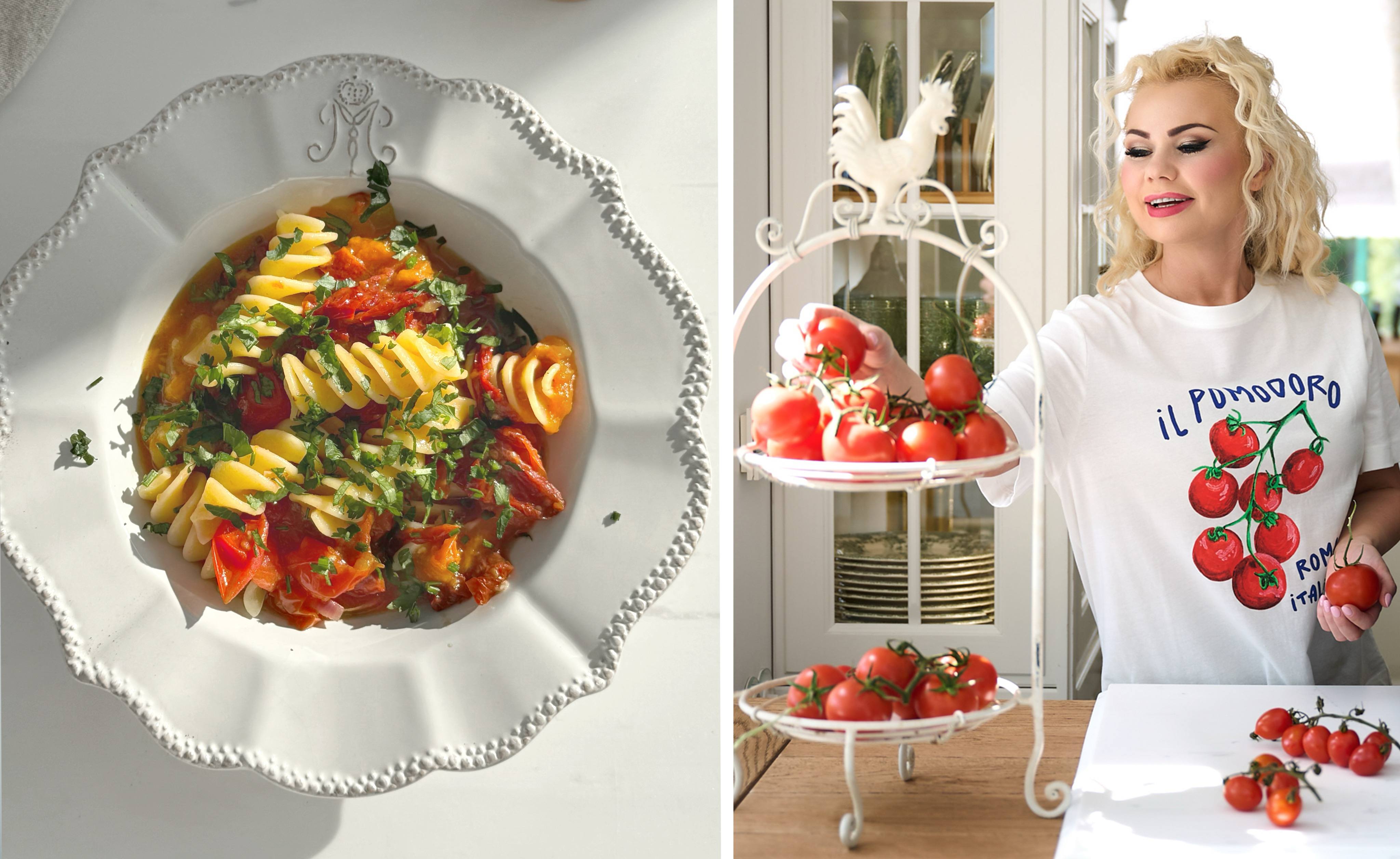 Ten dzień zainspirował mnie do podzielenia się z Wami jednym z najlepszych przepisów na makaron jaki znam! Skąd jego wyjątkowość? Ten przepis składa się z samych pieczonych warzyw, w tym głównie…pomidorów!