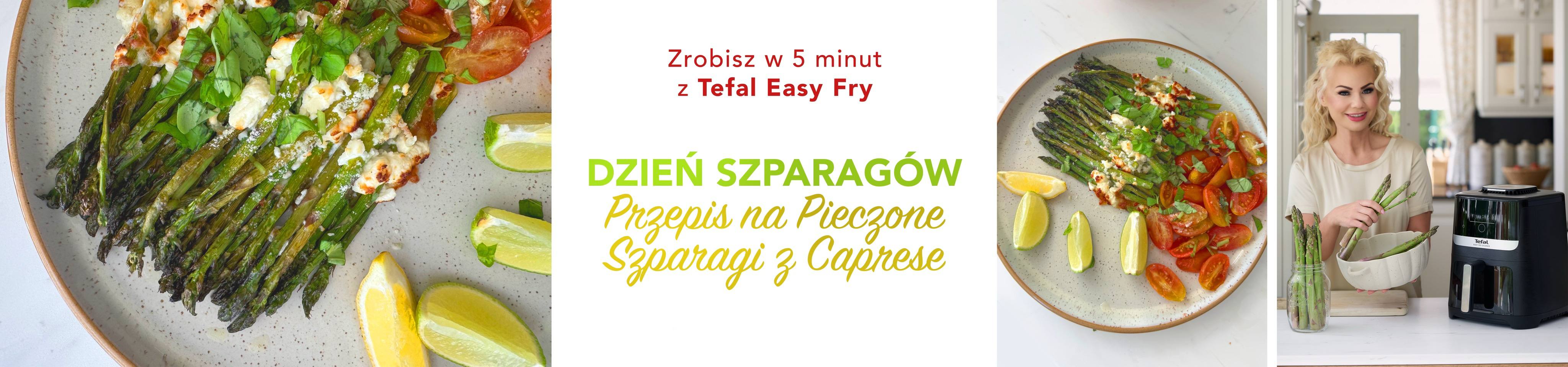 Przepis na Pieczone Szparagi z Caprese, to doskonały sposób na włączenie szparagów do wiosennej diety. Przepis przygotowałam w Tefal Easy Fry Silence tzw. frytkownicy beztłuszczowej. Gotowanie w frytkownicy beztłuszczowej, zwanej także airfryerem, polega na pieczeniu potraw przy użyciu gorącego powietrza. Frytkownica beztłuszczowa jest zdrowa, bo wymaga dużo mniej tłuszczu niż tradycyjna frytkownica.