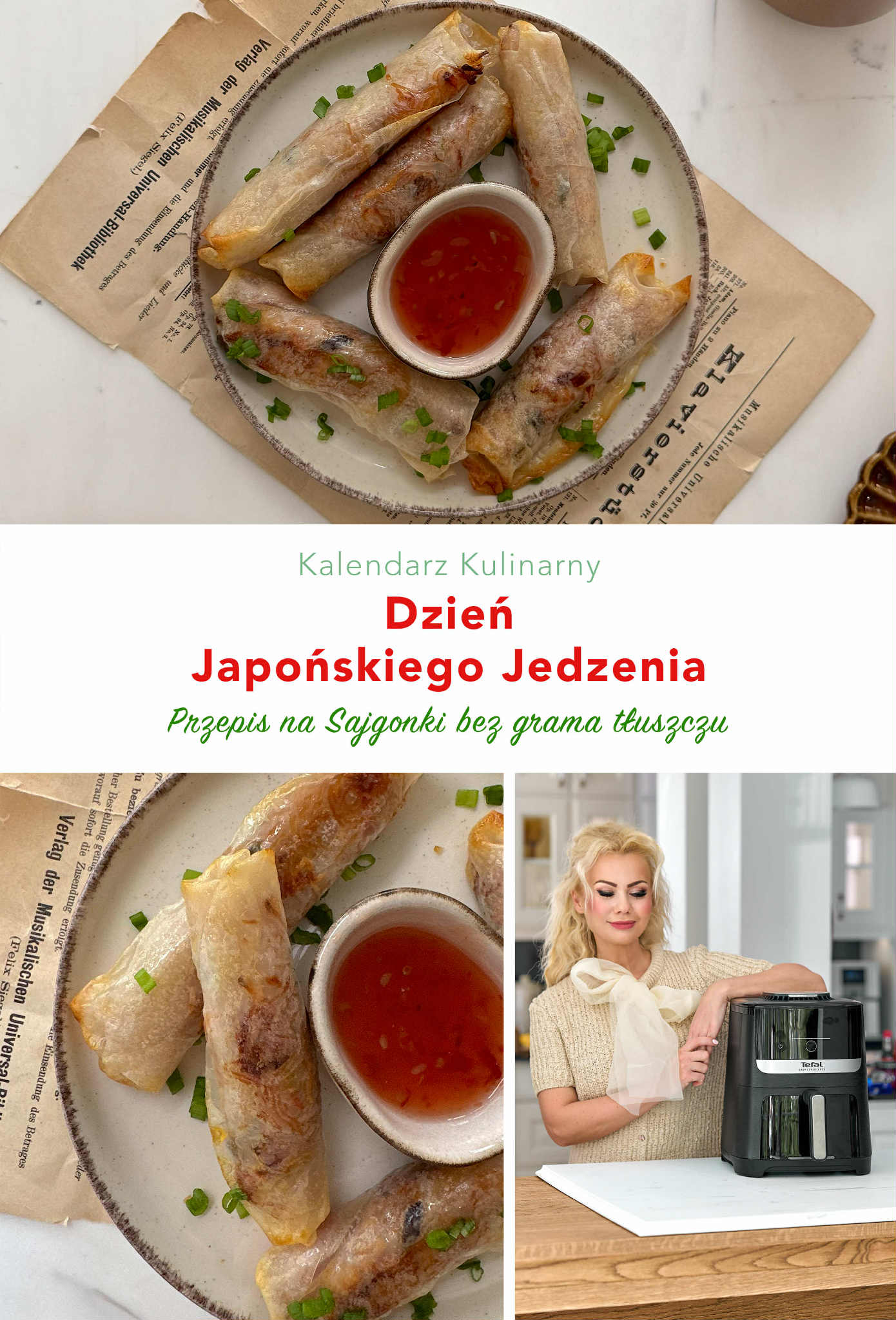 W Japonii sajgonki — znane tam jako spring rolls — są wyjątkowo popularne i często pojawiają się zarówno w street foodzie, jak i w domowej kuchni. To danie, które idealnie wpisuje się w japońską estetykę: lekkie, świeże i pełne warzyw. Dlatego mam nadziej, że wersja na sajgonki bez grama tłuszczu przygotowane w Airfryerze — chrupiące, delikatne , staną się jednym z Twoich ulubionych dań – nie tylko przy okazji świętowania Dnia z Kuchnią Japońską!
