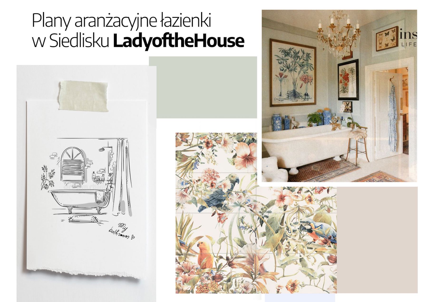 W łazienkach w stylu wiejskim najlepiej sprawdzają się jasne kolory takie jak czysto biały i wszelkie odcienie pasteli. Moim punktem wyjścia do całej aranżacji łazienki stały się płytki Tubądzin z kolekcji Pearl Parrots, które na ścianie tworzą piękny, wyjątkowy obraz. Na bazie kolorystyki płytek – starałam się dobrać pasujący kolor farby i tutaj z ratunkiem przyszła totalna nowość od Farb Magnat – seria Magnat Passion dostępna wyłącznie w Leroy Merlin. Zerknijcie koniecznie na paletę barw z tej serii – kolory nawiązują do różnych pasji jakie możemy przenieść do naszych wnętrz. Jest to bardzo inspirujący motyw! Mając ustaloną bazę kolorystyczną mogłam zacząć wybierać dodatki do łazienki rustykalnej i oświetlenie. Nie zabraknie w niej z pewnością wikliny, świec i światła w ciepłych, nastrojowych barwach.