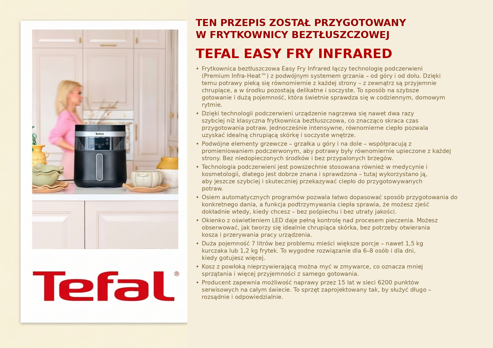 Dzięki temu Tefal Easy Fry Infrared świetnie sprawdza się właśnie wtedy, gdy zastanawiamy się co zrobić na obiad szybko i wygodnie.
