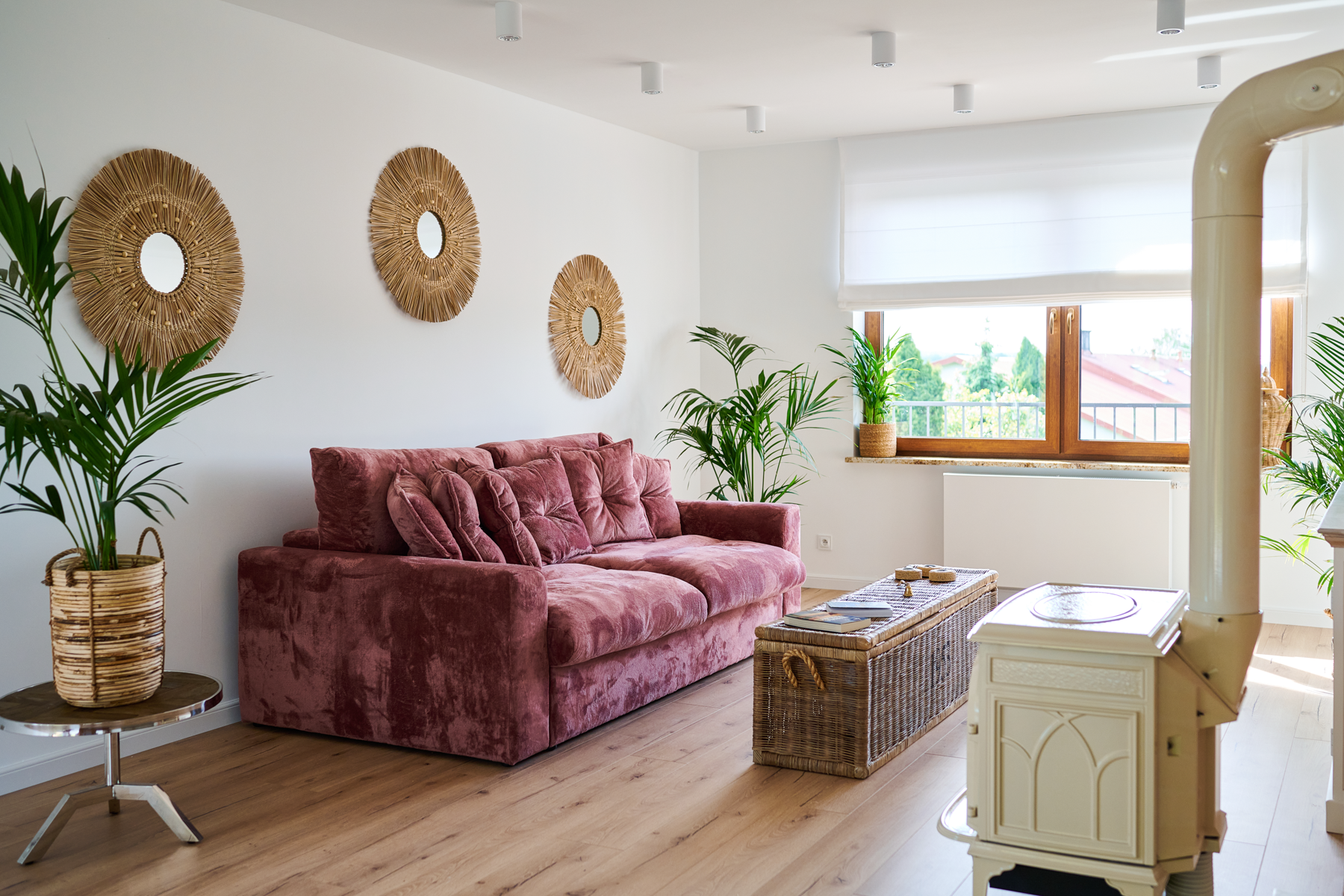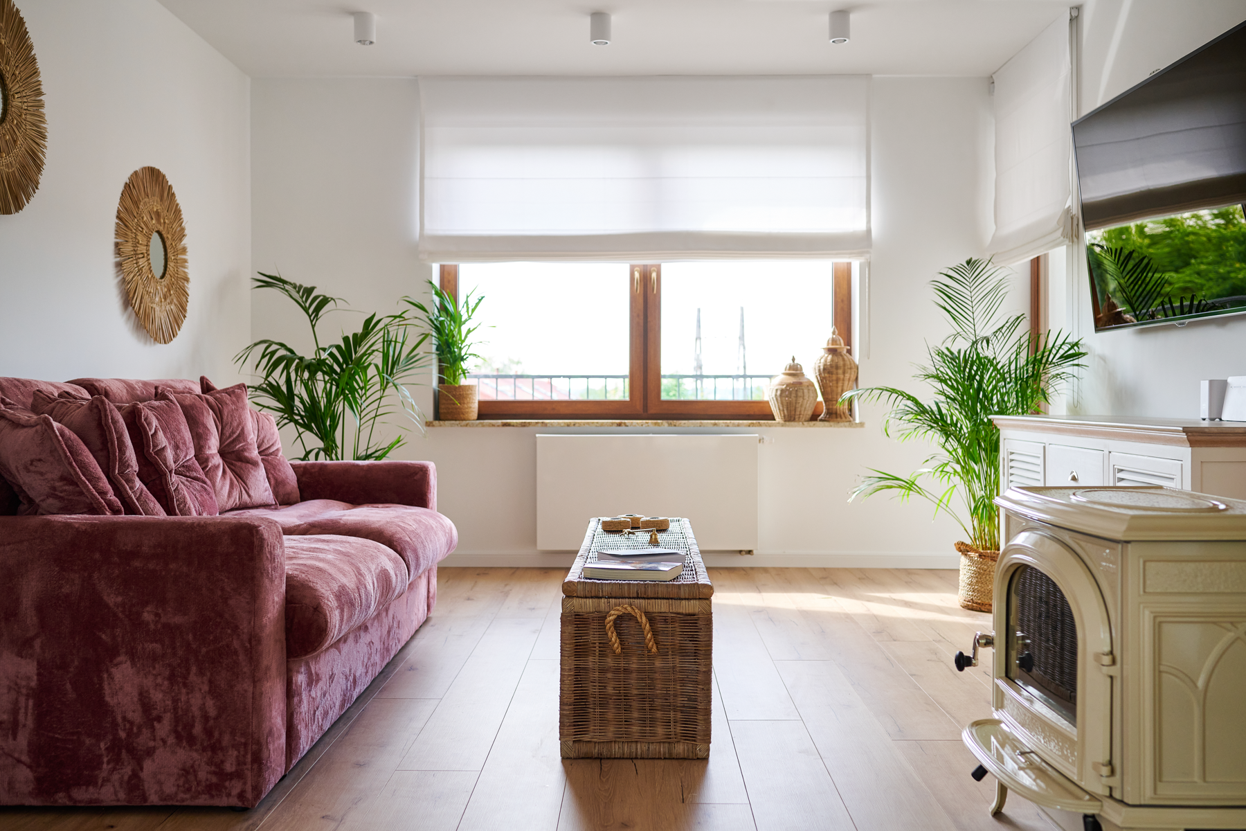 - Okna również zostały wymienione na szyby trójwarstwowe z dodatkową funkcją odbijania światła. Poprzednie nie były szczelne i posiadały parametry niespełniające obecnych standardów. Okna stanowiły największy koszt remontu. Zrezygnowałam z zasłon na poczet rolet rzymskich, wykonanych pod wymiar na zamówienie.
