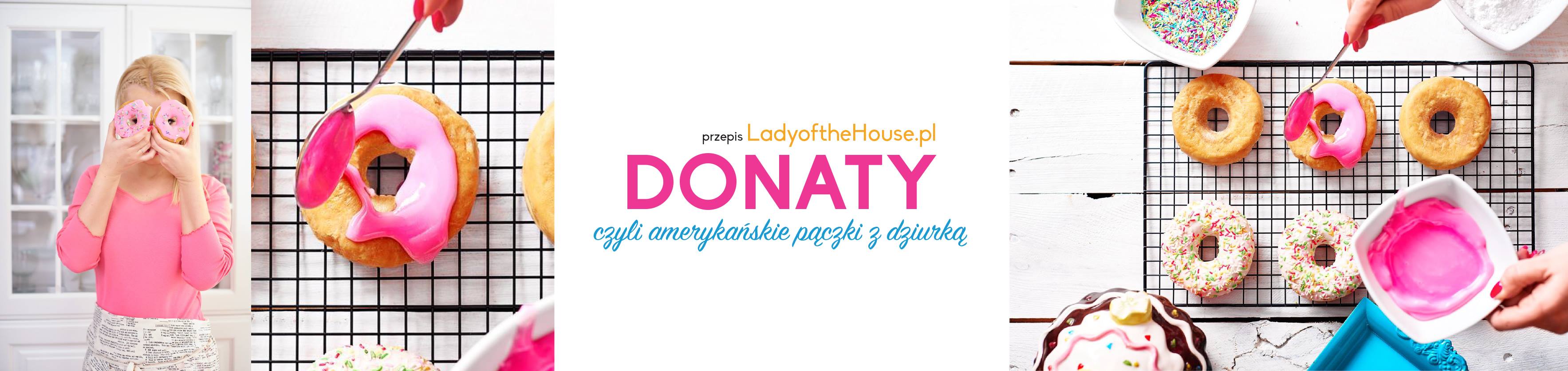 - Jeśli zdecydujemy się na lukrowanie, to najlepszą metodą jest przygotowanie lukru w szerokim i płaskim garnuszku i dekorowanie donatów poprzez zamaczanie, zapewni to nam równomierne rozprowadzenie lukru. Jeśli to niemożliwe, zawsze pozostaje tradycyjne polewanie.