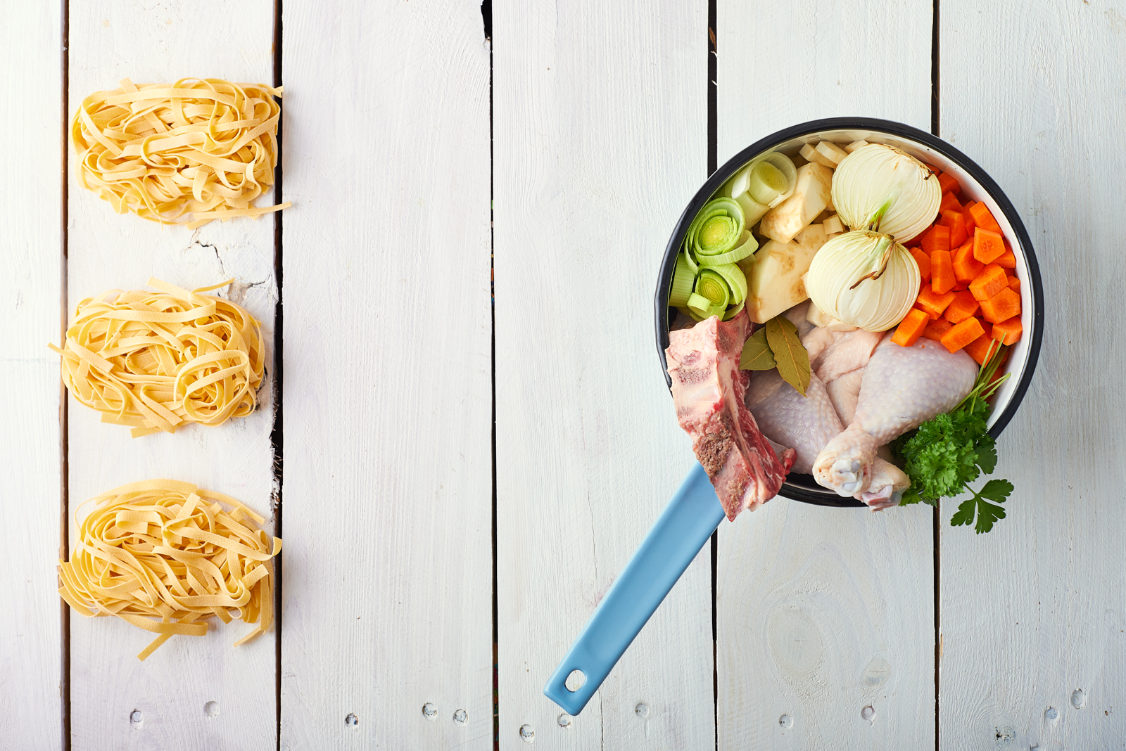 Oprócz mięsa, bohaterami rosołu są także warzywa. Nie szczędź ich ilości, bo to warzywa właśnie odpowiadają za aromat i składniki odżywcze. Wybierz: marchew – która dostarcza węglowodany, karotenoidy i żelazo, pietruszkę – ze względu na witaminę A, por – który zapewnia wapń i fosfor, a także seler – doskonale pobudzający wydzielanie kwasów trawiennych. Nie możemy zapomnieć także o cebuli – odpowiedzialnej za intensywny smak zupy.