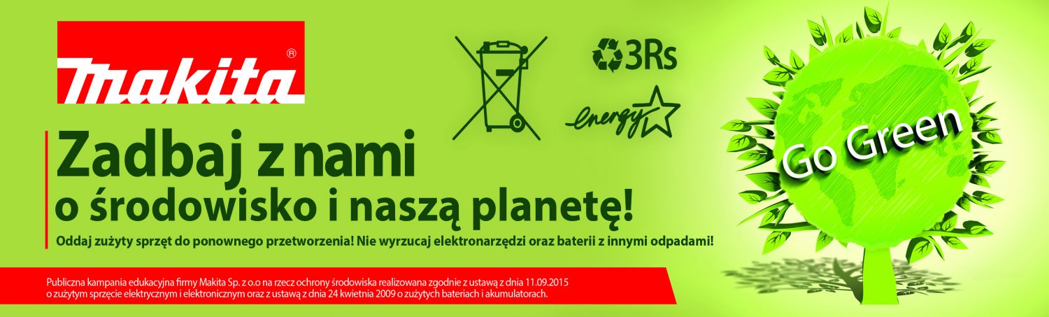 MAKITA przykłada szczególną wagę do tego, aby produkowane narzędzia były przyjazne zarówno użytkownikom, jak i całemu środowisku. Bierze czynny udział w wielu akcjach proekologicznych, które mają na celu między innymi propagowanie idei efektywnego i racjonalnego gospodarowania odpadami. Należą do nich również działania wynikające z Ustawy o zużytym sprzęcie elektrycznym i elektronicznym oraz z Ustawy o bateriach i akumulatorach. Firma co roku początkiem stycznia rusza z dużą kampanią ekologiczną mającą na celu w sposób łatwy i dowcipny uświadamianie społeczeństwu co należy robić ze zużytym sprzętem elektrycznym i elektronicznym oraz ze zużytymi bateriami i akumulatorami. Do tego celu stworzona jest specjalna strona: TOOLSTORY.PL na której można znaleźć podstawowe zagadnienia z ochrony środowiska np., co to jest recykling, dlaczego warto recyklingować zużyty sprzęt czy też jaki sprzęt można oddać do recyklingu. Ponadto można tam znaleźć ciekawostki ekologiczne oraz informację, gdzie można oddać zużyty sprzęt.