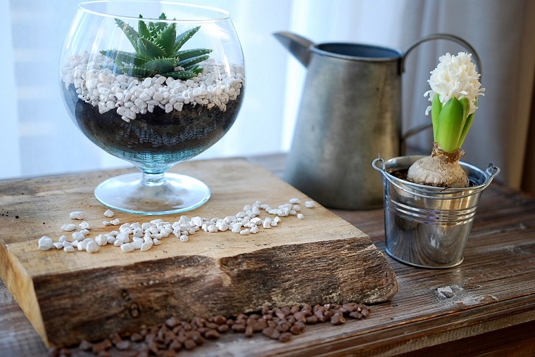 TERRARIUM ROŚLINNE bo o nim mowa to niezwykle wdzięczne dekoracja. Jej wykonanie zajmuje 15 minut a koszt nie przekracza 10 złotych. Na pewno każdy z Was posiada w domu szklane, przezroczyste naczynie! Może nim być wazon, misa ale także słoik czy głębsza patera. Do tego wystarczy odrobina ziemi, dekoracyjne kamyki oraz mało wymagające rośliny (dostępne w każdej kwiaciarni/ok. 5 zł. za sztukę) jak: sukulenty bądz eszeweria.