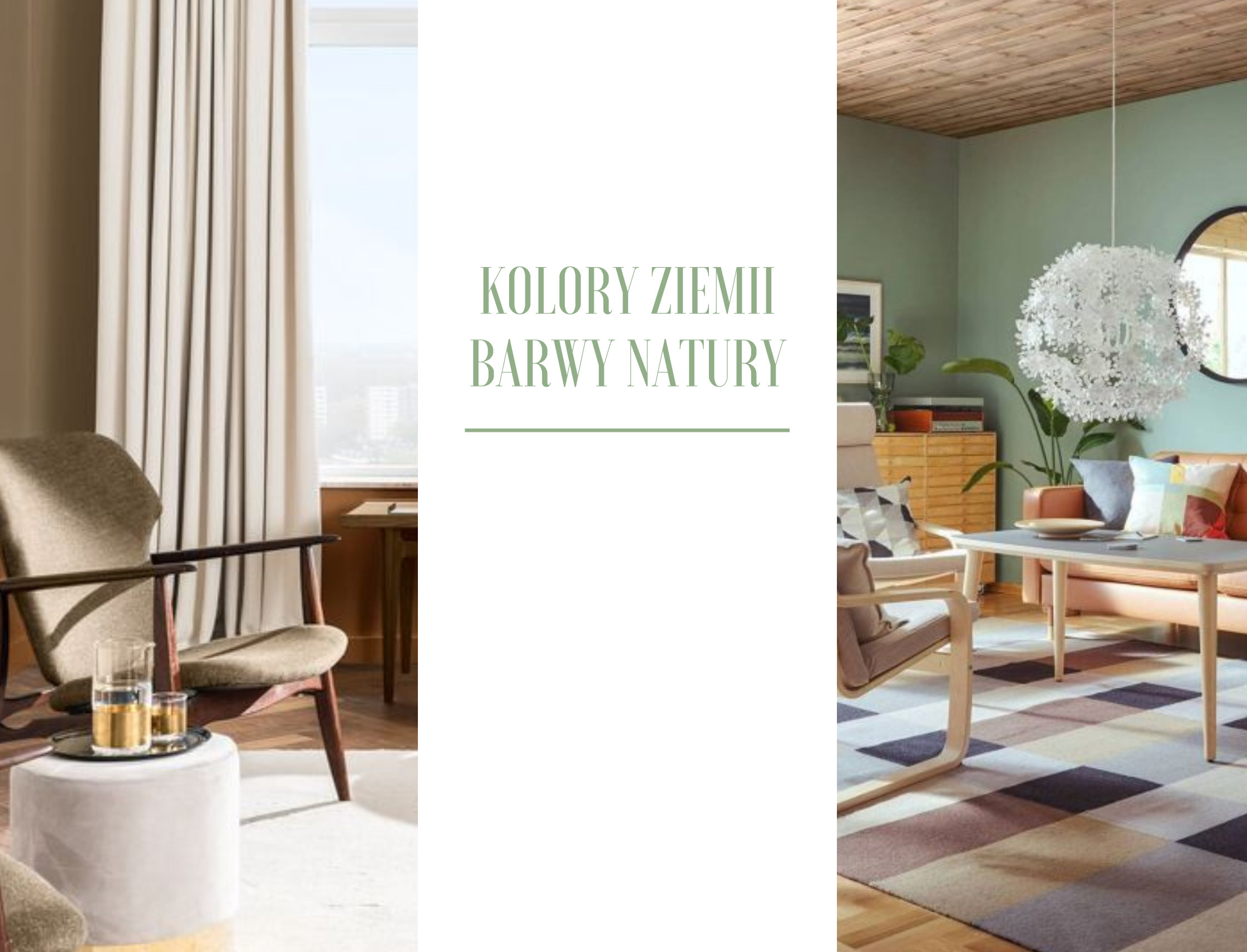 KOLORY ZIEMII – BARWY NATURY: w 2021 kolory wnętrz będą należały do przyrody. Wyróżniamy ciepłe brązy – które są inspirowane piaskiem i spaloną glebą. W modnych paletach odnajdziemy karmelowy brąz, otulający beż i łagodne szarości, stłumiony żółty i rdzawe odcienie pomarańczu. Dzięki tym solidnym, bezpiecznym kolorom klasyczne aranżacje staną się bardziej szykowne, a w minimalistycznych wnętrzach zapanuje przytulna atmosfera. Barwami 2021 będą także zielenie leśne oraz błękity – czyli kolory kojarzące się z wodą, niebem i lasem. Ich nasycone odcienie będą jak zastrzyk energii, a te bardziej rozmyte wyciszą i odświeżą zmysły.