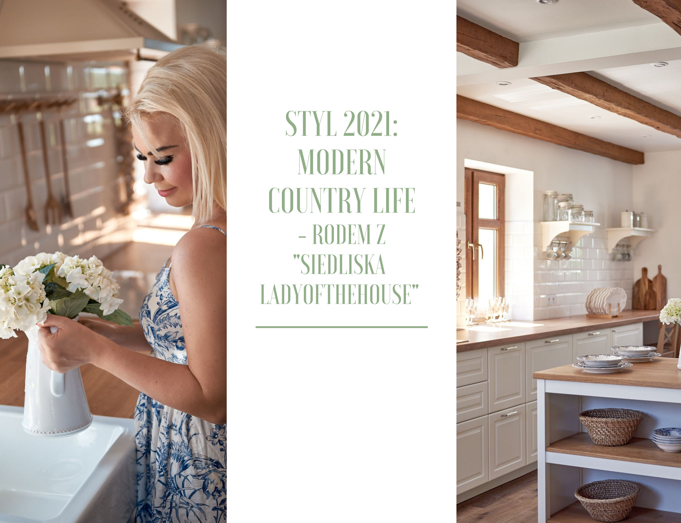 MODERN COUNTRY LIFE, czyli współczesne życie na wsi – Na koniec coś, co kocham najbardziej…i w roku minionym zaczęłam już prezentować Wam poprzez moje media remontując ponad 100-letni dom. “Siedlisko LadyoftheHouse” czyli wszystko to co kojarzy nam się z radosnym czasem spędzonym w domku babci na wsi, przytulnymi obiadami z rodziną, bezpiecznym, domowym klimatem i ogromem ciepła…Nurt wnętrzarski modern country life, to estetyka czerpiąca z sielskiego życia na wsi, choć w nieco nowoczesnym wydaniu..To trend, który łączy sielską i swojską przytulność z nowoczesnymi rozwiązaniami. Bardzo nostalgiczny, ale jednocześnie nawiązujący do nurtu eko w designie. Wykorzystuje on rozwiązania vintage oraz naturalne materiały, takie jak surowe drewno, bawełnę, len czy wiklinę.